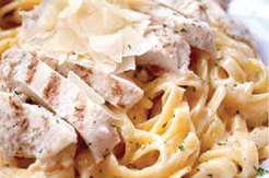 Pasta covered with a creamy homemade Alfredo sauce. With grilled chicken breast